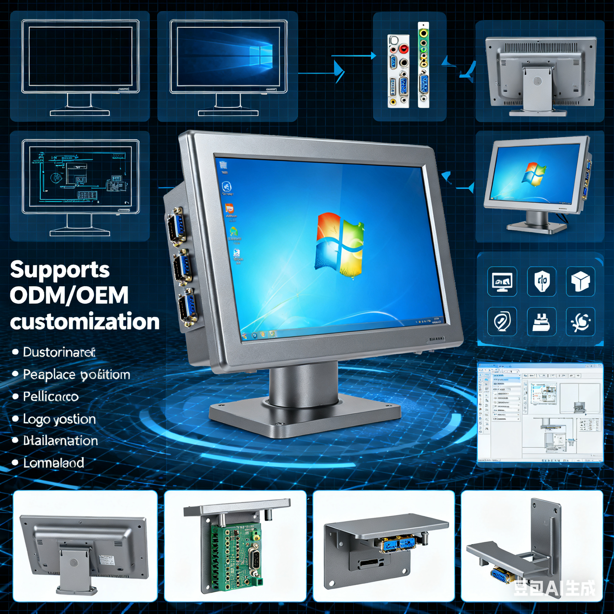 Supports ODM/OEM customization — screen size, I/O ports, system, logo, and installation method. Flexible design meets various industry requirements.