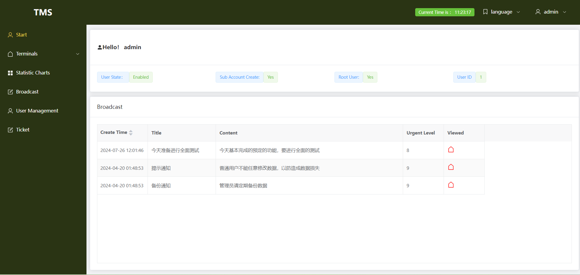 TMS (Terminal Management Service) is a cloud system used to remotely control deployed devices (terminals). It can perform functions such as lock/unlock, change configurations, push notifications, retrieve terminal status and statistics, and remote debugging.